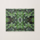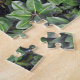 Verlieren Sie sich in den Tiefen des grünen Wunderlandes auf diesem Puzzle, einem Muster, das aus einem Originalfoto von HomeWare eines Gummibaumes gemacht wurde. Das Foto wurde wiederholt, um mehrere Blätter zu bilden, was eine geheimnisvolle Tiefe in diesem üppigen, tropischen Design schafft. Die Blätter sind glänzend und glatt, in natürlichen Grüntönen, von einem helleren, gelben Grün im Sonnenlicht bis zu einem tieferen Grün im Schatten. Ihre hellgelben grünen Stiele fügen dem Foto ein lineares Muster hinzu.