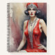 La flapper perfecta, con un vestido rojo que brilla junto a un collar de diamantes. Un icono de la moda y el glamour de los años 20.