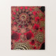 Ein glitzerndes Fraktal Design mit verzierten dunklen und lebhaften Rot-Spiralen, überlagert mit goldenen Filigreen wie Metallfässern und mit glitzernden Rubinen bestickt.