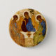 Antikes Andrei Rublev-Kunstwerk/Ikone mit dem Vater, dem Sohn und dem Heiligen Geist, die an einem Tisch sitzen. Die Bilder scheinen Engelsflügel zu haben.