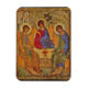 Antikes Andrei Rublev-Kunstwerk/Ikone mit dem Vater, dem Sohn und dem Heiligen Geist, die an einem Tisch sitzen. Die Bilder scheinen Engelsflügel zu haben.