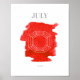 Dieses Kunstdruckposter ist mit einer rubinroten Wasserfarbenwaschung und einer grafischen Edelstein-Kontur für den Geburtstein von Juli ausgestattet.