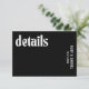 Moderne Hochzeitskassenkarte mit einem einfachen und minimalen Design mit fett weißer Typografie auf schwarzem Hintergrund. Die Farben können in alle Farben geändert werden, die Sie im Designbearbeitungstool auswählen. Diese zeitgenössische Hochzeitszimmerkarte eignet sich hervorragend für eine Hochzeitsfeier.