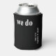 Moderne schwarze Hochzeit kann Coolers mit einem einfachen und minimalen Design mit "wir tun" in fett zeitgenössischer Typografie. Die Farbe der Schriftart kann in beliebig viele Farben geändert werden, die Sie im Designbearbeitungstool auswählen. Diese Dosenkühler eignen sich hervorragend für Hochzeitsempfang, Verlobungsfeier oder Brautparty.