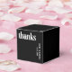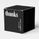 Moderne Gastgeschenk Hochzeit mit schlichtem und minimalem Design mit "Dank" in fett weißer Typografie auf schwarzem Hintergrund. Die Farben können in alle Farben geändert werden, die Sie im Designbearbeitungstool auswählen. Diese zeitgenössischen Gastgeschenk Hochzeiten eignen sich hervorragend für eine Hochzeitsfeier mit Gothic- oder Halbzeitthemen.