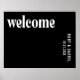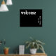 Modernes Hochzeitsschild-Poster mit einem einfachen und minimalen Design mit "Begrüßung" in fett weißer Typografie auf schwarzem Hintergrund. Die Farben können in alle Farben geändert werden, die Sie im Designbearbeitungstool auswählen. Dieses zeitgenössische Begrüßungszeichen eignet sich hervorragend für eine Hochzeitsfeier mit einem oder zwei Themen.