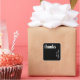 Moderner Hochzeitsaufkleber mit einem einfachen und minimalen Design mit "Dank" in fett weißer Typografie auf schwarzem Hintergrund. Die Farben können in alle Farben geändert werden, die Sie im Designbearbeitungstool auswählen. Diese zeitgenössischen Hochzeitsaufkleber eignen sich hervorragend für eine Hochzeitsfeier.