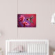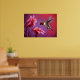 Dieses lebendige, malerische Bild erfasst den zauberhaften Moment eines Kolibri im Mittelflug, seine schillernden grünen und rubinroten Federn schimmern, während er Nektar aus einem Haufen hellrosa Hibiskus-Blume zaubert. Die Flügel des Kolibris sind verschwommen, was auf eine schnelle Bewegung hindeutet, während sich sein schlichter Körper und seine auffälligen Farben von einem wirbelnden, beeindruckenden Hintergrund aus tiefen Purpel und Rot abheben. Die Blume mit ihren lebhaften Blütenblättern und goldenen Farbtönen werden in fett, mit Pinselstrich-ähnlichen Details dargestellt und verleihen dem Ganzen ein Gefühl von Konsistenz und Vitalität. Die Gesamtkomposition strahlt ein Gefühl von Bewegung, Farbe und natürlicher Schönheit aus und verbindet Realismus mit einer künstlerischen, fast traumhaften Qualität, die das zarte Zusammenspiel zwischen dem winzigen Vogel und seiner blumigen Umgebung feiert.