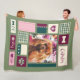 Große Fleecedecke mit Ruby cavalier King Charles spaniel art design. Quilted Look Design. Grün und Rosa. Hundekunst.