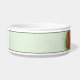 Desteis originelle Cartoon-Illustration einer niedlichen rubinischen Farbe Cavalier King Charles Spaniel züchten Hundekopf. Es gibt auch einen personalisierbaren Textbereich für einen Namen im grünen Schriftart. Hinter dem Hund liegt ein grüner Farbspritzer. Die Hintergrundfarbe ist hellgrün mit dunkleren grünen Rändern auf der Oberseite und unten.