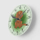 Desteis originelle Cartoon Illustration einer niedlichen rubinfarbenen Cavalier King Charles Spaniel züchten Hund, der sitzt. Der Hintergrund ist grün. Das Uhrengesicht besteht aus schwarzen Zahlen.