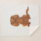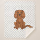 Desteis originelle Cartoon Illustration einer niedlichen rubinfarbenen Cavalier King Charles Spaniel züchten Hund, der sitzt. Der Hintergrund weist ein Muster grauer Hundepfoten auf.