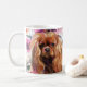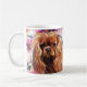 Klassische Tasse mit Ruby cavalier King charles spaniel art design. Blumenuntergrund. Text auf der Rückseite, "Das Leben ist besser mit einem Ruby Cavalier". Vintag rosa Farben. Macht ein großartiges Geschenk.