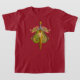 A ruby-toned dragon forms a fiery sigil around a blade. This bold fantasy shirt is perfect for kids who love dragons, legends, and heroic themes.