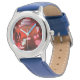 Kinderuhr aus Edelstahl mit blauem Lederarmband