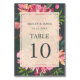 Elegante und moderne rubinrosafarbene Tischnummer mit blühender Hochzeitskarte mit bemalten Aquarellfarben-Blume in Rosa und üppigem grünem Blattwerk auf einem schicken, schwarzen Hintergrund. Fügen Sie einfach Ihre Hochzeitsdetails hinzu. Wenn Sie Hilfe oder passende Produkte benötigen, kontaktieren Sie uns bitte über unseren Shop. Wir helfen Ihnen gerne, Ihre Hochzeit zum schönsten Tag zu machen!