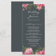 Elegantes Hochzeitsmenü mit rubinrosafarbenem, blumengeschmückten Rosa-Pinien-Design mit bemalten Aquarellfarben-Blume und Blattwerk auf einem schicken, schwarzen Hintergrund. Fügen Sie einfach Ihre Hochzeitsmenüdetails hinzu. Wenn Sie Hilfe oder passende Produkte benötigen, kontaktieren Sie uns bitte über unseren Shop. Wir helfen Ihnen gerne, Ihre Hochzeit zum schönsten Tag zu machen!