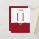 Dieses rot-weiße IMITAT mit Blumenpost-Karte mit rotem IMITAT und einer rubinfarbenen und rautenbraunen Tischnummer passt zu der unten abgebildeten Hochzeitseinladung. Sie müssen die Karte für jede gewünschte Tischnummer anpassen, indem Sie die "11" zu jeder gewünschten Nummer ändern, sie in Ihren Warenkorb aufnehmen und den Vorgang wiederholen, bis Sie die richtige Anzahl an Einzelkarten im Warenkorb haben. Wenn Sie Fragen haben, schreiben Sie bitte an niteowlstudio@gmail.com.