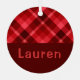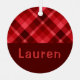Ruby Red Kariert Monogram Circle Metal Ornament