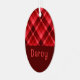 Ein mit Monogramm ovales Weihnachtsbaumschmuck aus Metall mit einem schönen diagonalen karierten Muster in rubinrot. Erstellen Sie das passende Geschenk, indem Sie auf die Schaltfläche "personalisiert" klicken, um einen Namen oder eine benutzerdefinierte Nachricht im vorgegebenen Vorlagenfeld hinzuzufügen. Wählen Sie den Link "Bearbeiten mit dem Entwurfstool", um den Schriftart, die Textgröße und vieles mehr zu ändern.
