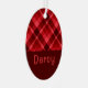 Ruby Red Kariert Monogram Oval Metal Ornament Aus Metall