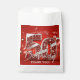 Add a touch of glamour to your milestone celebration with these elegant red and silver favor bags. This design features a stunning "50" created with a faux ruby red sequin and glitter effect, accented by metallic silver chrome details and festive party balloons. The deep red background provides a sophisticated contrast that makes the typography pop.