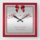 Ruby Red & Silver Glitzer Wedding Day Quadratische Wanduhr