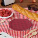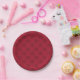 Elegantes rubinrotes Schneeflockenmuster auf der Weihnachtspapiertafel des Party. (siehe Entsprechende Servietten und Biermatten usw.)