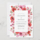 This design features a vibrant array of watercolor roses and peonies in shades of pink and ruby red. The lush botanical arrangement creates a romantic and energetic atmosphere, perfect for a sunny seasonal event. Deep green foliage provides a natural contrast to the warm, blossoming petals, resulting in a sophisticated aesthetic.