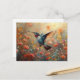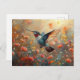 Ein lebendiges Aquarelldecoupage-Design mit einem rubingebeutelten Kolibris, der zwischen zarten Blume schwebt und die Gnade und Energie der Natur in Blüte einfängt.