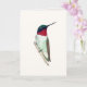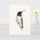 Der Ruby-Kehlkopf (Archilochus colubris) ist ein winziger Vogel mit schwarzer Maske, grüner Krone und heller roter Kehle. Es ist in offenen Wäldern, Waldecken, Grasland, Wiesen und in Parks, Gärten und Hinterhöfen zu finden, wo sie oft Kolibris und röhrenförmige Blume besuchen.