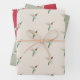 Niedliches Umhüllungspapier mit einem rubingebeutelten Hummingvogelmuster auf beigem, grünem und rotem Hintergrund.