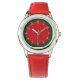 Mit dieser Armbanduhr in zwei Tönen mit rotem und grünem Gesicht und weißen Zahlen dekorieren Sie Ihr Handgelenk stilvoll.