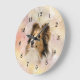Sable Sheltie oder Shetland Sheepdog Gesicht auf einem Bild wie pastellfarbene Hunde liebt Wand-Uhr