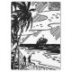 Ein schwarz-weißes Retro-Bild eines Kreuzfahrtschiffes und zwei Menschen, die vor der Küste winkten. Bild aus einem Vintagen Druckerbuch aus den 40er Jahren (ohne Copyright).
