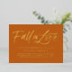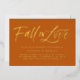 Fall in Liebe! Mit dieser individuell gestaltbaren Einladung zur Verlobung von Goldfolie laden wir Sie zu Ihrer Veranstaltung ein. Es zeichnet sich durch eine Pinselschrift und eine einfache Typografie aus. Personalisieren Sie diese, indem Sie Ihre Veranstaltungsdetails hinzufügen. Diese orangefarbene Einladung eignet sich perfekt für Herbst- oder Herbstveranstaltungen. Matching-Elemente sind verfügbar.