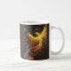 Ein Phönix erhebt sich in einem windgekehrten Schlag von Herbstblättern, standhaft gegen das Bild des schwarzen Vogels am Himmel. Von Paxdomino