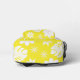 Ein weißes Blumenmuster sitzt auf einem hellen, sonnigen, gelben Hintergrund.