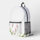 Tragen Sie Ihre Essentials stilvoll mit diesem weißen Tulpe Blume Rucksack. Mit einem zarten Tulpenblumendesign auf einem knusprigen weißen Hintergrund ist dieser Rucksack ideal für den Schulbesuch, für Reisen oder den Alltag. Es ist aus langlebigen Materialien gefertigt und bietet geräumige Abteilungen, komfortable gepolsterte Riemen und ein elegantes modernes Aussehen. Fügen Sie Ihrem Outfit eine Touch Eleganz hinzu, während Sie Ihre Sachen organisieren und sicher behalten.
