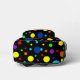 Ein zufälliges Muster in Regenbogenfarben auf schwarzem Hintergrund.