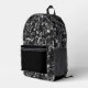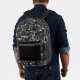 Dieser individuelle Rucksack wird in einer mehrfarbigen Holzkohle-Camouflage mit zweifarbigem schwarzen Farbakzent angezeigt.