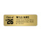Das Abschluss-Rücksendelabel enthält sportive Jahrgangstexte und benutzerdefinierte Formulierungen, die mit einem Nachnamen und einer Rücksendeadresse personalisiert werden können. Die Imitate mit goldfarbener Hintergrundfarbe und schwarzen Textfarben können an jede Schulfarbe angepasst werden.