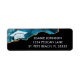 Eine aquamarine Aquarelltextur mit goldenem Glitzer ist mit einem Graduiertenverschluss und Tassel und Set auf einem knusprigen schwarzen Hintergrund geschmückt. Unsere elegante Graduierungsparty Einladung Rücksendeadresse Label Koordinaten mit einer aquamarinen und goldfarbenen Aquarell 5 x 7 Flachkarte grad Party Einladung.
