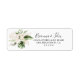 Dieses goldene tropische Blattwerk mit floraler Rückkehr-Adresse ist perfekt für eine rustikale Hochzeit. Das Design besticht durch handbemaltes Aquarellgold und tropisches grünes Blattwerk mit eleganten Blume in Rot.