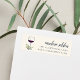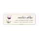 Cremefarbene cremige Rücksendeadressen-Aufkleber tragen Ihren Namen und Ihre Rücksendeadresse in rauchblauen, grauen Buchstaben zusammen mit einer Aquarellzeichnung eines mit Olivenzweigen geschmückten Rotweins.