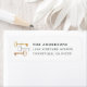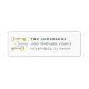 Die charmanten Rücksendeadressen-Aufkleber verfügen über ein Trio antiker Vintager Skeletttasten in Gold, Silber und Kupfer-Aquarell mit ihren Rücksendeadressen-Details in schick-schwarz mit einem Hauch von Marine.