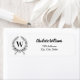 Weißer Hintergrund. Mit einem Kranz dekoriert. Personalisieren und fügen Sie Ihren Namen, Ihre Adresse und Familie monogram initial. Schwarzer Text.