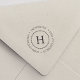 Elegantes Design der Rücksendeadresse mit einem gepunkteten Kreissegment im Single. Ihr Familienname und Ihre Zuhause-Adresse sind in klassischer Schrift rund um den Raum gebogen.