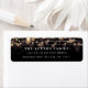 Elegante Rücksendeadressen-Aufkleber fügen Ihren Einladungen oder Mailings eine Touch Glanz hinzu. Rich schwarze Labels zeigen Ihre Rücksendeadresse in weißer Schrift mit Streichern goldener Märchenleuchten an der Spitze.