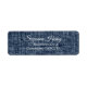 Stilvolle Rücksendeadressen-Aufkleber _script typografie mit grunge-blauem Denim Hintergrund. Fügen Sie einfach Ihre Informationen hinzu und haben eine schöne Möglichkeit, alle Ihre Briefe und Umschläge zu adressieren. Moderne Rücksendeadressen-Aufkleber.